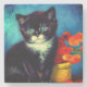 Stone Untersetzer mit einer schönen Van Gogh Tuxedo Katze! Diese kleine Pose neben einem Korb orangefarbener Blume auf einem roten Tisch. Ein tolles Geschenk für Katzenliebhaber und holländische Kunstsammler!