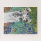 Das wunderschöne und künstlerische Puzzle besticht durch das Irische von Vincent Van Gogh, das als Hintergrund für ein bezauberndes Aquarellama mit einer extravaganten Krone von Blume dient.