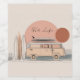 A calm and stylish illustration of a vintage camper van parked by the beach with surfboards, capturing the essence of van life and coastal freedom. With soft neutral tones and a minimalist retro aesthetic, this design evokes slow living, ocean breezes, and the joy of life on the road.