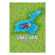 Lake Van Turkey Karte schönes Reiseplakat mit einem roten Stützpunkt Flugzeug.