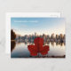 Postkarte mit Vancouvers Skyline und einem wunderschönen kanadischen Red Maple Leaf.