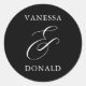 Moderne Hochzeitsaufkleber mit einem einfachen und minimalen Layout mit Ihren Namen und einem eleganten Ampersand in großem Format. Das Farbthema ist weiß über einem schwarzen Hintergrund und kann im Entwurfsbearbeitungstool geändert werden.