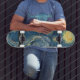 Skateboard Deck mit dem Bild von Vincent Van Gogh's Starry Night darauf.