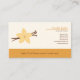 Visitenkarte in gelben Farbtönen mit einer Abbildung von Vanillebohne & Blume: perfekt für Kaffeehaus, Konditorei, Kosmetik, Catering, Berater oder einfach für Ihre Marke!