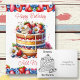 Personalisierte Geburtstagskarte mit Innenfarbseite. Niedliche personalisierte whimsical Aquarell Stil ai Illustration eines Vanillekuchen voll von Blume, Heidelbeeren, Erdbeeren und Sahne gepeitscht.