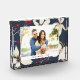 Eleganter Foto-Keepsake-Block bietet Ihr Lieblings-Foto vor einem marineblau-Hintergrund mit blassen Elfenbein-Blume und roten Beeren. Personalisieren Sie Ihre persönliche Beschriftung; wir Liebe sie mit Ihren Namen und dem Jahr.