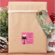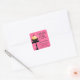 © 2015 Sozialite Designs. Ein whimsical Kuchenbackkasten Siegel mit einem köstlichen Kuchen und Kirsche auf einem Ständer. Der Hintergrund hat ein rosa Blasenmuster.