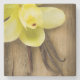 Vanille-Hülsen und Blume über hölzernem Steinuntersetzer