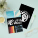 Eine umzingelte, stilisierte Faust, die eine verdampfte Mod hält, mit den schablonen Worten "Vape On Strong" auf der Seite. Eine Nachricht an andere Dämpfer, die die Negativität mit Wissen und Informationen beheben und bekämpfen.