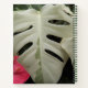Standardformat, spiralgebundenes Notizbuch mit dem Foto eines überwiegend weißen, variierten Monstera-Pflanze-Blattes neben einer kontrastierenden rosa Laceleaf-Blume. Auf Vorder- und Rückseite des Notebooks gedruckte Bilder. Ein schönes, blumengeschmücktes Design! Wählen Sie Ihre Optionen für den Notebookstil aus.