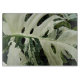 Auf dieser mittelgroßen, dekorativen Glasschneide-Platte, die das Foto eines grünen und weißen Monstera-Pflanze-Blattes zeigt, die gemeinhin als Schweizer Käse-Pflanze bekannt ist, würzen und würzen Sie Ihr Essen sicher. Ein schönes, blumengeschmücktes Design! Eine perfekte Größe für das Hacken von Obst und Gemüse.