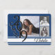 Blau, weiß und schwarz 2019 Varsity Stripe Einladung. Drei Fotos können in dieser festlichen Klasse von 2019 Abschluss Einladung oder Ankündigung in blau hinzugefügt werden. Passen Sie den Text an, um ihn an Ihre Bedürfnisse anzupassen.