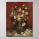 Vase mit chinesischen Asterern und Gladiolen. Vincent van Gogh. Stillleben in dunkelwarmen Farben. Auf einem dunkelbordeauxfarbenen Hintergrund, ein Strauß mit Astern in einer großen Vase. Reproduktion berühmter Kunstbilder im öffentlichen Bereich.