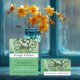 Vase mit rosa Rosen, antiker Händler Visitenkarte