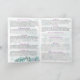 Überwältigte türkisfarbene Knospen und Blätter mit lila Akzenten schaffen ein einzigartiges und modernes Programm der Taufkirche. Teil der "Vasso Collection". Kasse oder Schwesterladen www.pixieprints.com für alle Ihre Einladungen.