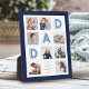 Schickt ein wunderschönes personalisiertes Geschenk an euren Vater (VATER), das er für immer lieben wird. Spezielle personalisierte Collage-Plakette mit Foto für Familien, um Ihre eigenen Fotos und Erinnerungen zu zeigen. Unser Design zeichnet sich durch ein einfaches 8-Foto-Collage Grid-Design aus, bei dem "VATER"-Buchstaben im Gitterdesign dargestellt werden. Jedes Foto ist gerahmt mit einem einfachen, vergoldeten Rahmen. Ein dicker marineblauer Rand umrahmt die Tafel. Anpassen mit Familiennamen. (Hinweis: Die Buchstabenfarbe "VATER" kann im Anzug Ihrer Vorliebe geändert werden)