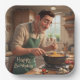 Diese lustigen Geburtstagszeitung Teller bieten den Koch im Haus. In diesem Fall ist es ein Mann. Ideal für ein Geburtstagsfest!