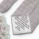 Erinnern Sie sich an Ihren Hochzeitstag an den verliebten Kleinen, den er einst war, indem Sie ihm diese personalisierte Brautvater-Krawatte mit einer personalisierten Botschaft mit Ihrem Namen und Ihrem Hochzeitsdatum geben. Geben Sie den Namen und das Datum ein, das in einem benutzerdefinierten Bereich gedruckt werden soll. Erstaunen Sie ihn auch mit dieser süßen Geste als Vatertagsgeschenk