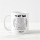 Geben Sie die Gabe der Liebe und Feiern mit unserer To My Vater Kaffee Tasse. Es ist ein nachdenklicher und sinnvoller Weg, die Reise der Vaterschaft zu ehren und die Freude, einen unterstützenden und liebenden Vater zu haben. Bestellen Sie jetzt und machen Sie diesen Moment wirklich unvergesslich.