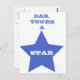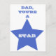NewparkLane - Spaß und trendige Postcard, mit einem großen marineblau blauen Stern und VATER, SIE SIND EIN STAR Slogan. Großer Vatertag oder Geburtstagskarte für Papa! Einfache Anpassung in Zazzle mit eigenem Text für ein personalisiertes Design. Alle Textstile, Farben, Größen können an Ihre Bedürfnisse angepasst werden. Karo diese Stars-Auflistung für passende Elemente heraus. Alle Artikel sind in verschiedenen Farben erhältlich: heiß rosa, aquamarin und marineblau. Viel Spaß und Mix und Match! Haben Sie spezielle persönliche Designwünsche? Kontaktieren Sie mich bitte!