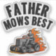 Feiern Sie Papa in Stil mit diesem lustigen "Father Mows Best" Design! Mit einer kühnen Grafik eines Vaters auf einem Rasenmäher mit Flammen dahinter ist es das perfekte lustige Geschenk für Vatertag, Geburtstage oder Rasenpfleger.