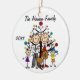 Eine hübsche runde Keramikandenken Weihnachtsfeiertagsverzierung kennzeichnet eine Strichmännchenfamilie einschließlich einen Vati, eine Mamma, ein Mädchen, einen Jungen und einen Familienhund vor einem verzierten Weihnachtsbaum mit Bereichen, die Sie mit Ihrem Familiennamen und dem laufenden Jahr besonders anfertigen können! Diese niedliche Feiertagsandenkenverzierung lässt ein großes Geschenk, damit die junge Familie ein spezielles Jahr gedenkt!