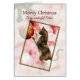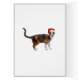 Eine lustige Weihnachtskarte, die eine auf den Hinterbeinen stehende Kalico-Katze zeigt und mit einer roten Balldekoration auf einem Weihnachtsbaum spielt. In der Karte ist ein Bild einer Katze, die eine Weihnachtsmannmütze trägt. Eine lustige Karte, die Sie an Freunde oder Familie senden können, die Katzen lieben.