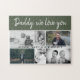 Vater mit Kindern und Vater 6 Foto Collage Puzzle. Collage von 6 Fotos, väterlicher Name mit einer süßen Nachricht in einem trendigen Skript und Namen von Kindern überlagern die Bilder. Fügen Sie Ihre 6 Lieblings-Fotos hinzu. Lieblicher Sake und ein Geschenk zum Geburtstag, Vatertag oder Weihnachten für einen Vater, neuen Vater oder Großvater.
