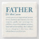 Vater, Substantiv: ein männlicher Elternteil; eine inspirierende Person, geliebt, nachgeahmt und bewundert; jemand, der seine Kinder unterstützt, leitet und ermutigt; ein Mann von außergewöhnlicher Geduld, Güte und Verstand; oft als erste Liebe einer Tochter bezeichnet; oft als erster Held eines Sohnes bezeichnet.