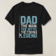 Dieses Bild zeigt einen schwarzen T - Shirt mit Text, der "VATER" in großen, hellblauen, leicht bedrückten Buchstaben oben ausliest. Unten steht in kleinerer, weißer Schrift "DER MANN, DER MYTH, DER FISCHLEGEND". Auf der links Seite ist eine feine Angelrutengrafik zu sehen.