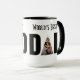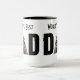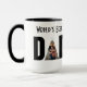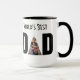 Vater Kaffee-Tasse, die mit Redewendungen oder Ferien personalisiert werden kann und zwei Fotografien.