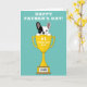 Franzosen, lass deinem Vater, er ist deine Nummer eins an diesem Vatertag. In der Nachricht heißt es: "Ich Liebe dich mehr als Spaziergänge, Glücklicher Vatertag." Das Design zeigt ein niedliches Schwarz-Weiß-Bulldog, der in einer Goldtrophie sitzt und am unteren Ende Platz hat, um das diesjährige Datum hinzuzufügen. Schriftart und Farben und durch Auswahl von "Klicken Sie, um weitere Anpassungen vorzunehmen" geändert werden.