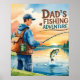Machen Sie Vater mit dem Fishing Adventure Watercolor Poster dieses Vaters! Mit einer ruhigen Aquarellszene eines Vaters, der an einem See mit dem Text "Vaters Fischabenteuer" angeln möchte, ist dieser Download ideal für den Vatertag am 15. Juni 2025. Jetzt herunterladen, auf Zuhause drucken und Geschenk Vater ein schönes Design für sein Lieblings-Hobby!