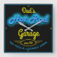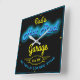 Vaters Garage oder eine beliebige Garage quadratische Uhr mit einem blauen Imitat Neoneffekt und gelben Typografie, verwenden Sie einfach diese Vorlage anpassen, um den Text auf Anzug zu ändern, falls gewünscht. Kein Werkzeug lieh Zone mit einem beliebigen Datum. Wählen Sie einfach die Farbe und Größe der Hand aus