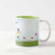 Niedliche Strichmännchen Kunst Tasse für Vater am Vatertag oder bei anderen Gelegenheiten. Zwei Mädchen und Namen auf einem Gras und Himmel Hintergrund und Herz-Blume. Personalisieren Sie den formatierten Text. Andere Stile in dieser Auflistung verfügbar.
