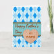 Glücklicher Vater's Day für #1 Papa, Papier Grußkarte. Raute-Design im Diamantmuster in Blau-Weiß-Tönen. Ein Imitat Holzherz mit Text fügt der Karte ein männliches Element hinzu. Modernes und modernes Design mit kühnen männlichen Linien und Farben. Vatertagskarte für einen Großvater / Großvater/ Opa. Muster mit Höflichkeit von KArnold/Pubdomainimages. Bild und Vers Copyright © Shoaff Ballanger Studios.