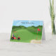 Roter Golfwagen mit Sandfalle, Ball und Fahne zum Vatertag.