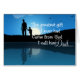 Vatertag Grußkarte/Silhouette von Mensch und Sohn mit dem "Besten Geschenk, das ich je von Gott kam, nenne ich ihn Vater" und Zitat innen. Bleibe in Touch mit Zazzle benutzerdefinierten Mitteilungskarten. Passen Sie alle Teile dieser gefalteten Karte - vorne und hinten, innen und außen - kostenlos an! Abmessungen: 4" x 5,6" (Porträt) oder 5,6" x 4" (Landschaft). Gedruckt auf ultra-schwerem Kartenbestand (120 lb) mit glänzender Oberfläche. Jede Karte kommt mit einem weißen Umschlag. Keine Mindestbestellung. Kann auf Grußkartengröße verfügbar sein