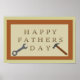 Dieses phantastische Poster zeigt ein Digitalbild eines Holzschreibtisches mit einer Gruppe von Holzbriefen, die den Happy Vathers Day ausdrücken. Jeder Buchstaben hat eine Reihe von Nägeln, die in ihn hineingesteckt sind. Auf der einen Seite des Schildes befindet sich ein Spanner und auf der anderen ein Hammer. Ein großartiges Design für jeden handlichen Vater, der Lieben hat, Dinge zu machen.