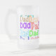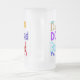 Diese mattierte Bier-Tasse hat das Wort "Vater" wiederholt in verschiedenen Schriftart und verschiedenen Farben im gesamten Design. Spaß und hell.