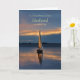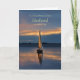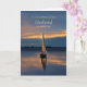 Eine Erinnerungskarte für eine Witwe im Urlaub des Vaters. Eine hübsche Landschaft mit einem Segelboot bei Sonnenuntergang.