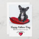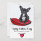 Niedliche Vatertagskarte des Vaterhundes aus dem Hund mit einem Jungtier auf einem Kissen mit Liebe des Hundes, des eigentlichen Packleiters.
