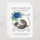 Eine hübsche Vatertagskarte Ihrer Katze, die eine Katze in einem Blumenrahmen aufgerollt hat. Der humorvolle Text lautet: "Ich habe dich von dem Moment an geliebt, als ich dich sah und dann hast du mir Zuhause genommen."