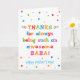 Du nennst deinen Vater Baba, nicht Vater. (Baba bedeutet Vater in Bangla / Bengali, Farsi, Urdu, Mandarin Chinesisch, Türkisch, Marathi, Walisisch, Kiswahili / Swahili, Albanisch & Luo.) Stellen Sie sich vor, wie aufgeregt Baba sein wird, eine Vatertagskarte zu erhalten, die speziell an ihn adressiert ist! Ihr Baba wird auch die Liebe dieser Karte hellen, bunten Design, das sagt "Danke, dass Sie immer so ein phantastisch Baba! Alles Gute zum Tag des Vaters!" Machen Sie diese Karte anpassbar! Klicken Sie auf "Design bearbeiten", "Unten/Rechts: Text & Bilder", "Text" und "Text hinzufügen", um Ihre eigene, personalisierte Nachricht an Baba inside zu schreiben!
