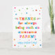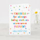 Du nennst deinen Großvater Papaw, nicht Opa. Stellen Sie sich vor, wie aufgeregt Papaw sein wird, eine Vatertagskarte zu erhalten, die speziell an ihn adressiert ist! Ihr Papa wird auch die Liebe dieser Vatertagskarte in ihrem hellen, farbenfrohen Design, in dem steht: "Danke, dass du immer so ein phantastisches Papaw gewesen bist! Alles Gute zum Tag des Vaters!" Machen Sie diese Karte anpassbar! Klicken Sie auf "Design bearbeiten", "Unten/Rechts: Text & Bilder", "Text" und "Text hinzufügen", um Ihre eigene, personalisierte Nachricht nach innen zu schreiben.