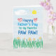 Vatertagskarte für Paw Paw. Wenn Sie Ihren Großvater Paw Paw statt Opa nennen, ist diese Vatertagskarte perfekt für ihn. Ihr Pfoten wird diesen niedlichen Mistkerl dieses Vaters, der zeichne: "Fröhlicher Vater-Tag zu meiner Lieblings-Paw!" Machen Sie diese Karte anpassbar! Klicken Sie auf "Design bearbeiten", "Unten/Rechts: Text & Bilder", "Text" und "Text hinzufügen", um Ihre eigene, personalisierte Nachricht zu schreiben, um Paw inside zu fügen!