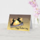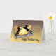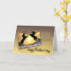 Zwei schwarze Hengste, die sich mit einem herrlichen Sonnenuntergang im Hintergrund aufziehen. Eine großartige Karte für einen Pferdefreund.