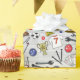 Die perfekte Geschenkpackung für Männer, die sich in ihrer männlichen Höhle verstecken, gedruckt mit einem Muster von Heimwerkern, Junk Food und Sportgeräten