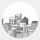 Vector Cityscape (Schwarz & Weiß) Runder Aufkleber
