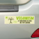 Dieser "Veganismus, eine Lösung so groß wie die Krise"-Autoaufkleber weist einen toten Baum und einen trockenen Boden auf.